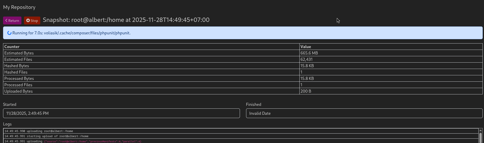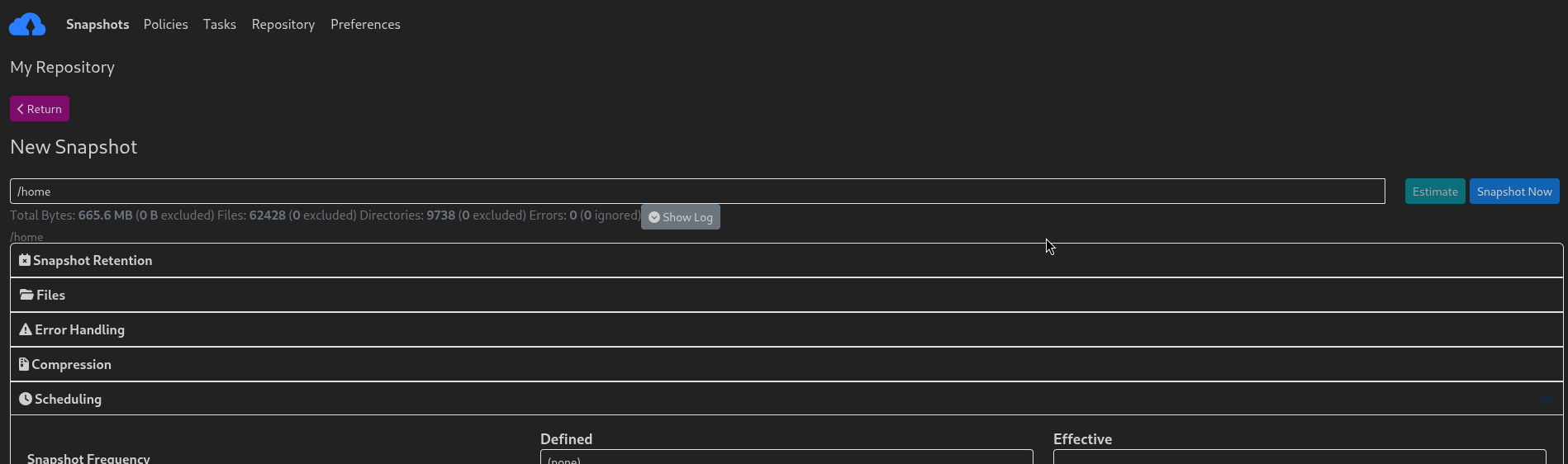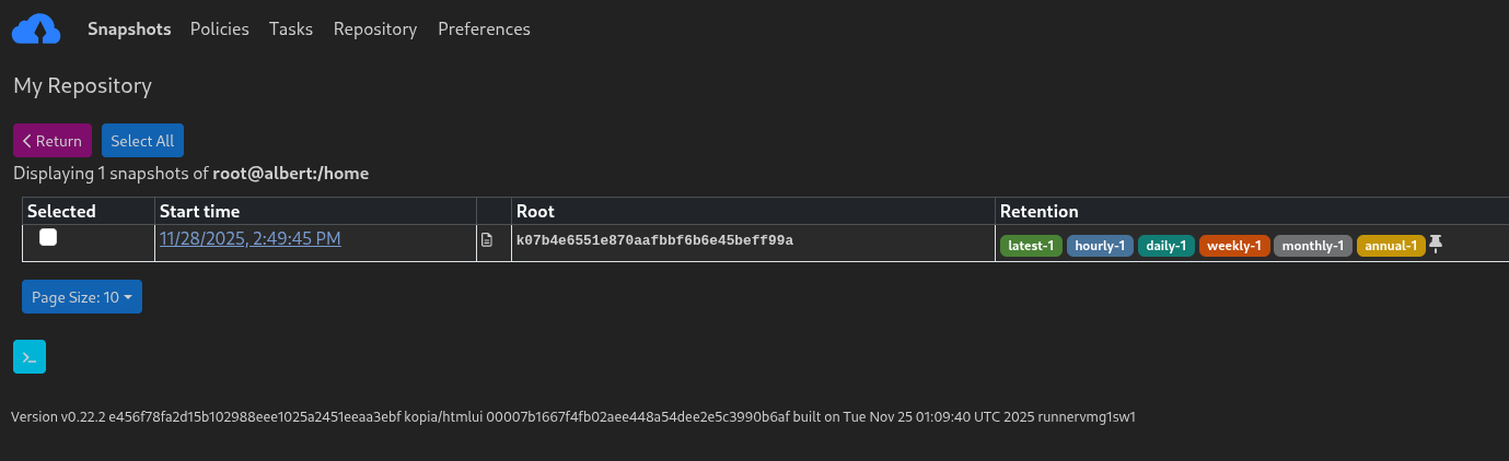 If the setup are success, you will be redirected to the Kopia snapshot page.